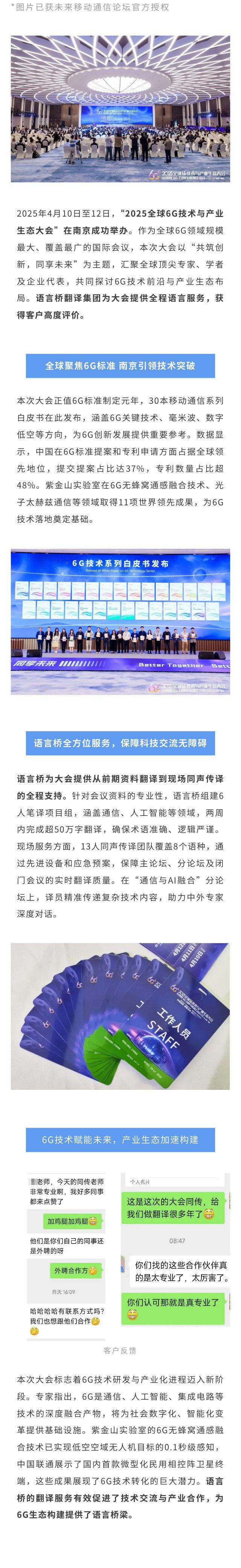 共筑創(chuàng)新,同享未來!語言橋?qū)I(yè)服務(wù)助力6G科技盛會