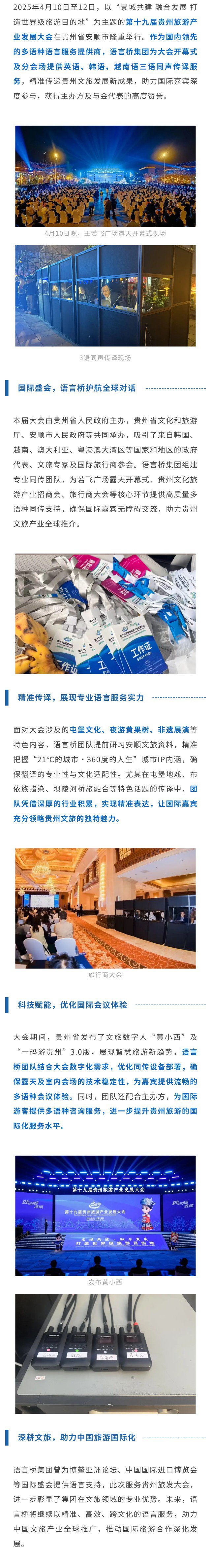 語言橋同傳服務助力第十九屆貴州旅游產業發展大會圓滿完成