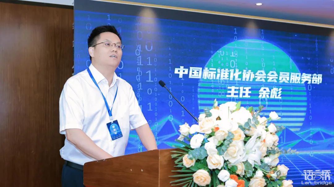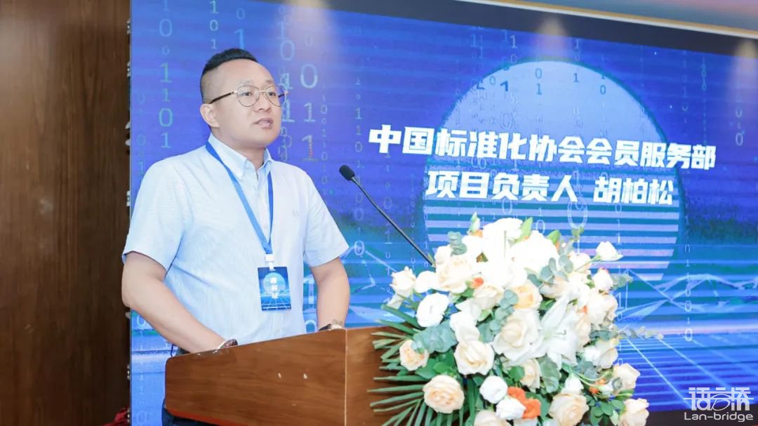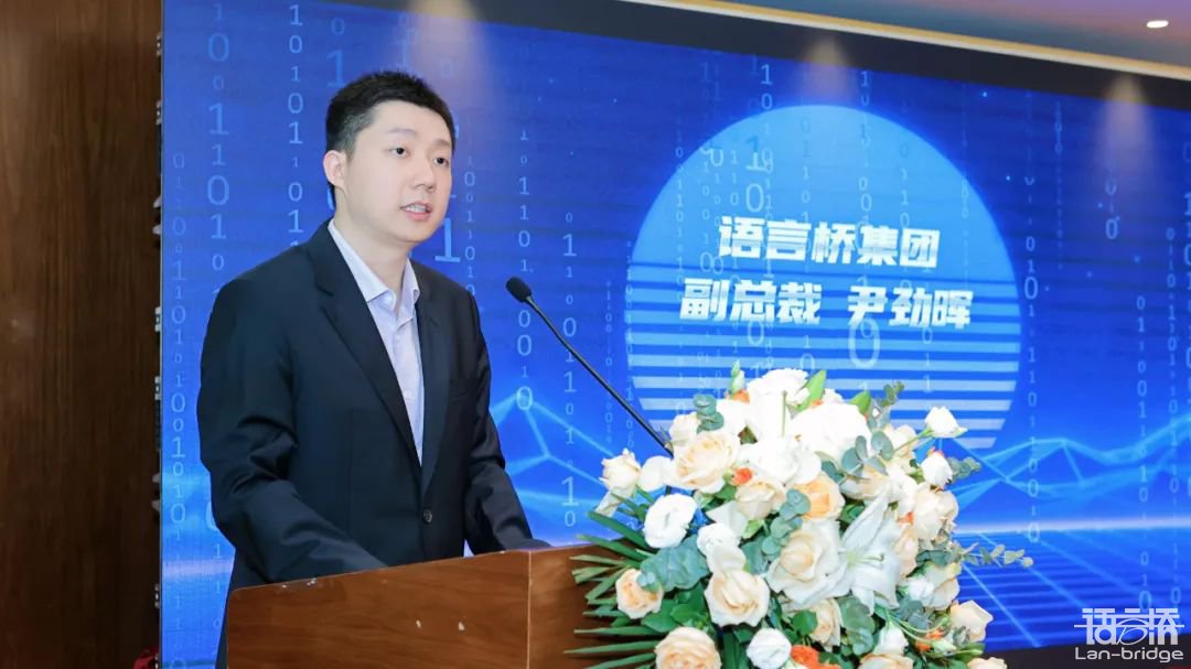 語言橋集團副總裁尹勁暉發言,代表語言橋集團祝賀中國標準化協會數據智能專業委員會的成立,同時表示語言橋集團作為數據智能專業委員會的秘書處單位,將積極參與專委會各項工作,攜手業界同仁,共同推動數據智能標準體系的建設與完善。