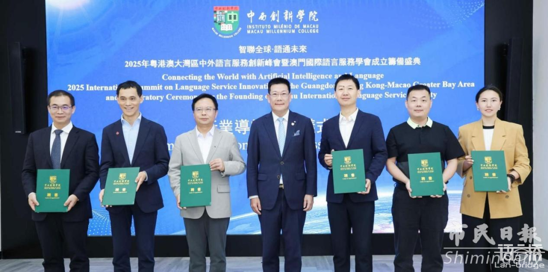 6月7日,“智聯全球·語通未來”2025年粵港澳大灣區中外語言服務創新峰會暨澳門國際語言服務學會成立籌備盛典在澳門隆重舉辦。本次峰會由中西創新學院主辦,語言橋集團作為協辦單位應邀出席,與海內外高校學者與業界領袖共商語言服務數智化發展與人才培養大計,為澳門打造國際多語服務樞紐注入強勁動能。