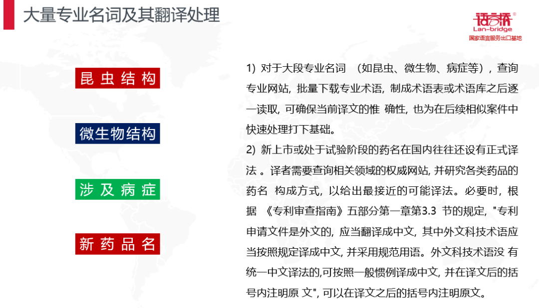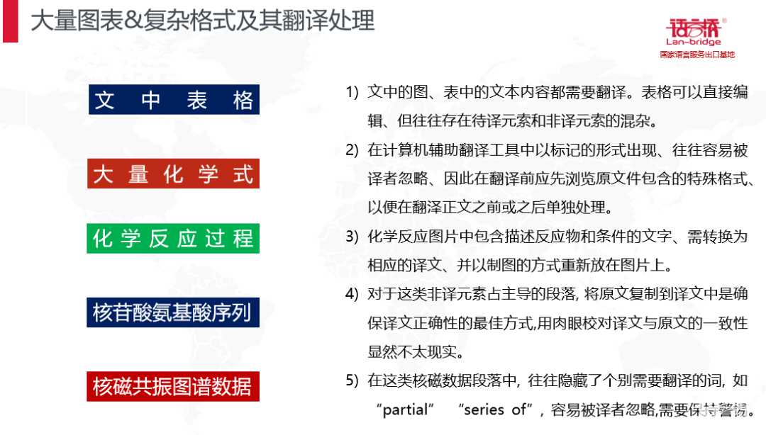 生物醫(yī)藥領(lǐng)域有大量的基團結(jié)構(gòu),相似句式,相似表達,昆蟲結(jié)構(gòu),微生物結(jié)構(gòu),涉及病癥,新藥品名稱等等,如果沒有前期的經(jīng)驗和術(shù)語積累,這也將會成為翻譯路上的絆腳石,語言橋在這些方面做了大量的分析和儲備,確保譯文的高質(zhì)量輸出。